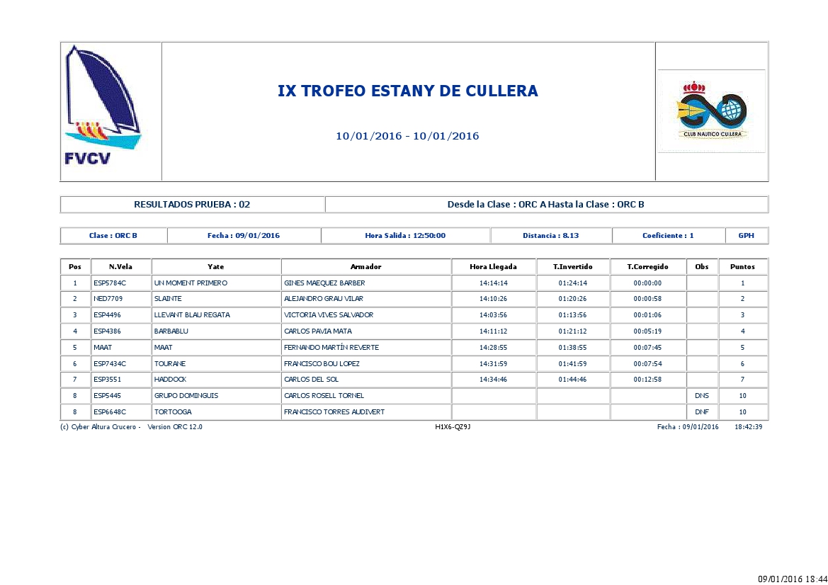 Casificiaciones del IX Trofeo de Estany de Cullera.